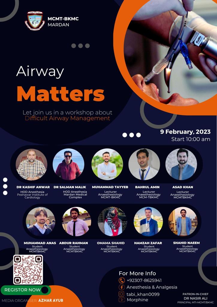 One day workshop on Difficult Airway at College of Medical Technology Mardan on 9th February, 2023